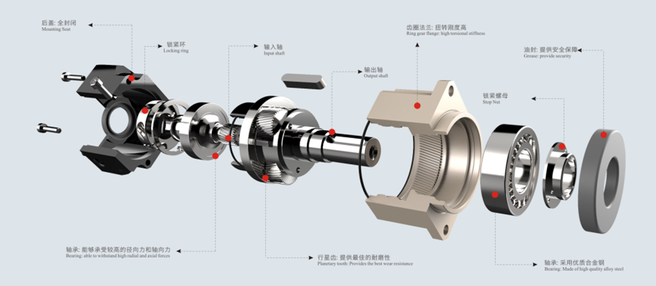 雙旋臂是指行星架的齒輪兩邊的支撐,在輸出軸帶負載傳動時,齒輪不會往相反方向偏,并且在行星架與輸入軸連接處設有高速軸承,使齒輪傳動更平穩(wěn)。