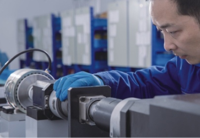 第三步:手持驅動電機,使其軸與行星減速機輸入端抱緊螺釘垂直,將驅動電機軸插入行星減速機輸入端孔,插入時必須保證兩者同心度一致和二測法蘭平行。如同心度不一致或二測法蘭不平行必須查明原因。另外,在安裝時,嚴禁用捶打,即可以防止錘擊的軸向力或徑向力過大損壞兩者軸承,又可以通過裝配手感來判斷兩者配合是否合適。判斷兩者配合同心度和法蘭平行的方法為:兩者相互插入后,兩者法蘭基本貼合,縫隙一致。