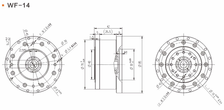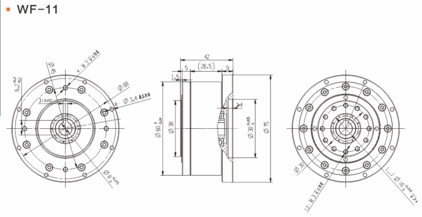 具有傳動(dòng)效率高、工作平穩(wěn)、噪聲低、結(jié)構(gòu)緊湊、重量輕、體積小、使用可靠、壽命長(zhǎng)、減速比范圍大等優(yōu)點(diǎn)。 輕量流線型設(shè)計(jì)、鋼質(zhì)本體、機(jī)型輕薄短小、體積比傳統(tǒng)行星式減速器大幅縮小、可節(jié)省安裝空間。 真圓齒形、齒腹大、抗壓性強(qiáng)、不干涉不崩齒、可承受頻繁正逆轉(zhuǎn)和瞬間急停慣性沖擊。 雙排結(jié)構(gòu)、負(fù)載分散、機(jī)理平衡、圓形齒輪設(shè)計(jì)、磨損小、噪音和溫升要比其他減速器低。 線接觸傳動(dòng)、摩擦系數(shù)小、效率高、出力扭矩大、慣量低、是一種精密的剛性傳動(dòng),剛性傳動(dòng)軌跡也最接近理想工作曲線,這和部分原件使用滾動(dòng)件的擺線式或和諧式傳動(dòng)設(shè)計(jì)有些許不同。 由于雙共軛工作曲線和撓性軸銷輸出裝置的改良設(shè)計(jì)、本機(jī)高精度背隙可控制在弧秒范圍。 長(zhǎng)效性油脂潤(rùn)滑、不需要保養(yǎng)、安裝方向不受限。 人力方式有筒夾緊式和鍵槽式供選用。